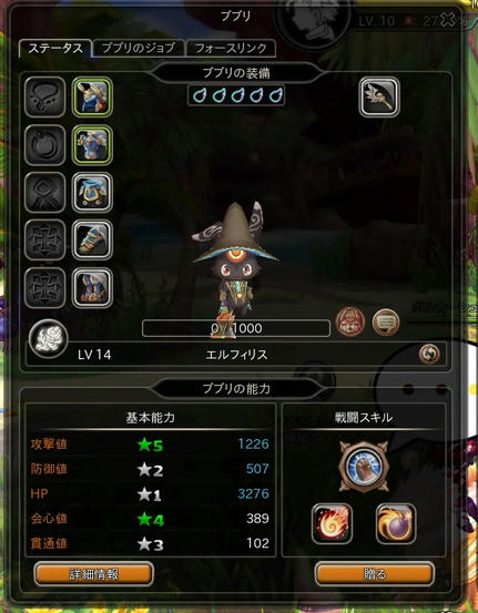 自分が戦士なので、ブブリは魔法系にしておきました。