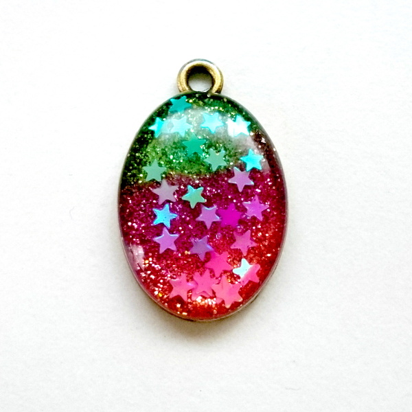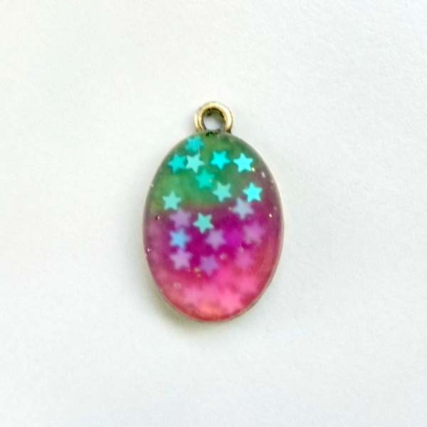 ピンクの方はレジンにのせたら沈んでいってしまい、レジン液が周りにあふれてしまいました。