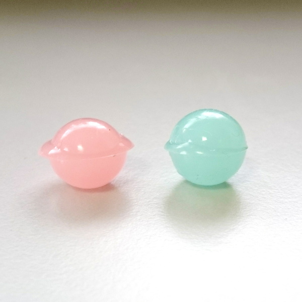 右の緑のやつは、半球を2つ硬化させ、片方だけ取り出してもう片方にのせてくっつけてみたものです。
