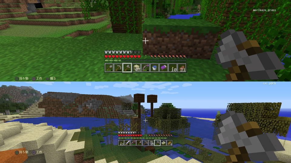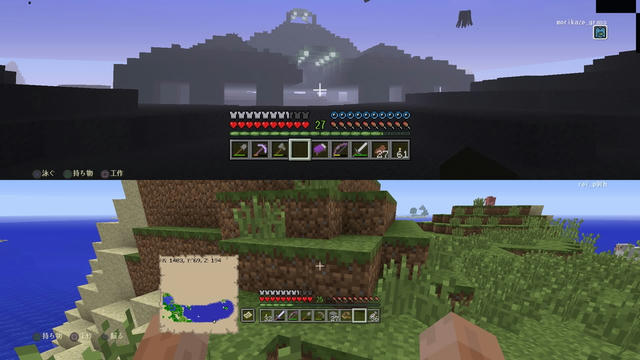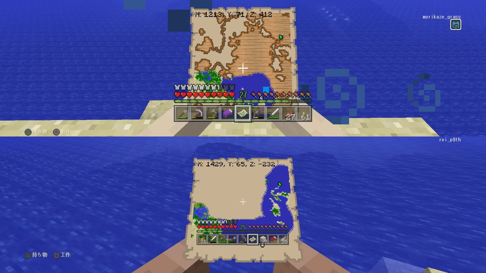 韻城さんとマイクラをして、製図家から森の地図と海の地図をもらいました。