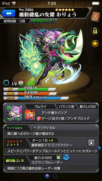 そういえば、モンストではおりょうの獣神化が実装されたようですね。