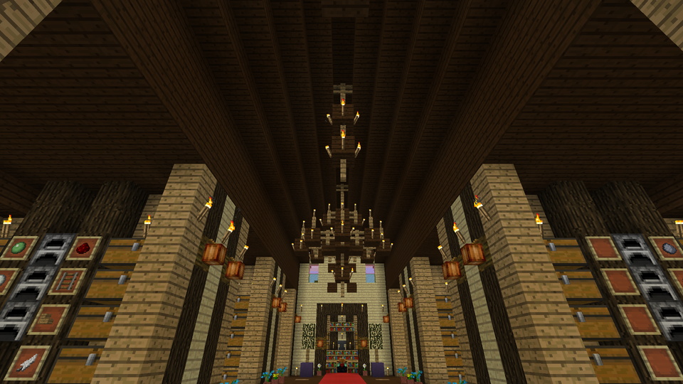 突き当りの部屋はマイクラではエンチャント部屋だったのですが、ビルダーズ2では占い部屋っぽい感じにしてみました。
