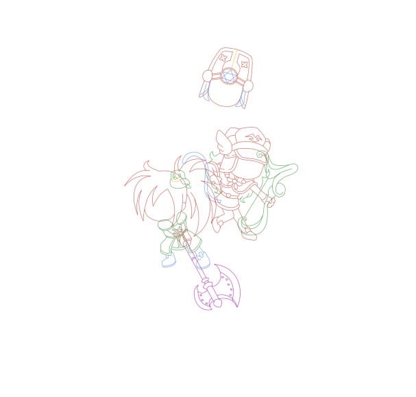 線が結構重なってますがパーツやキャラごとにレイヤーを分けてるので大丈夫。