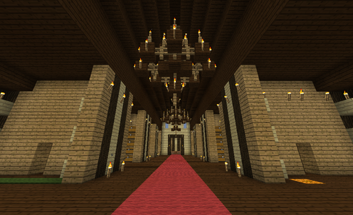 真ん中あたりに小さい照明をつけ、奥にもう一つシャンデリアを設置。