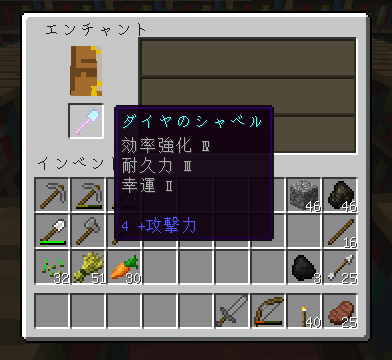 ほとんど昨日作ったエンチャント台で装備にエンチャントしまくってるだけでした(ぇ