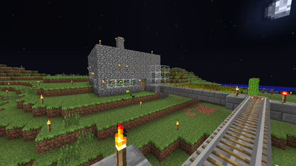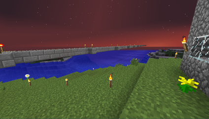 適当に設備を整えた後、周囲の地面という地面に松明を置きまくって明るくしてました。