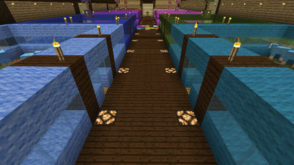 家と統一したいということから、床にレッドストーンランプを埋め込みました。