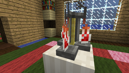 台を置いているのはネザーでとれる水晶をくっつけてブロックにしたものです。