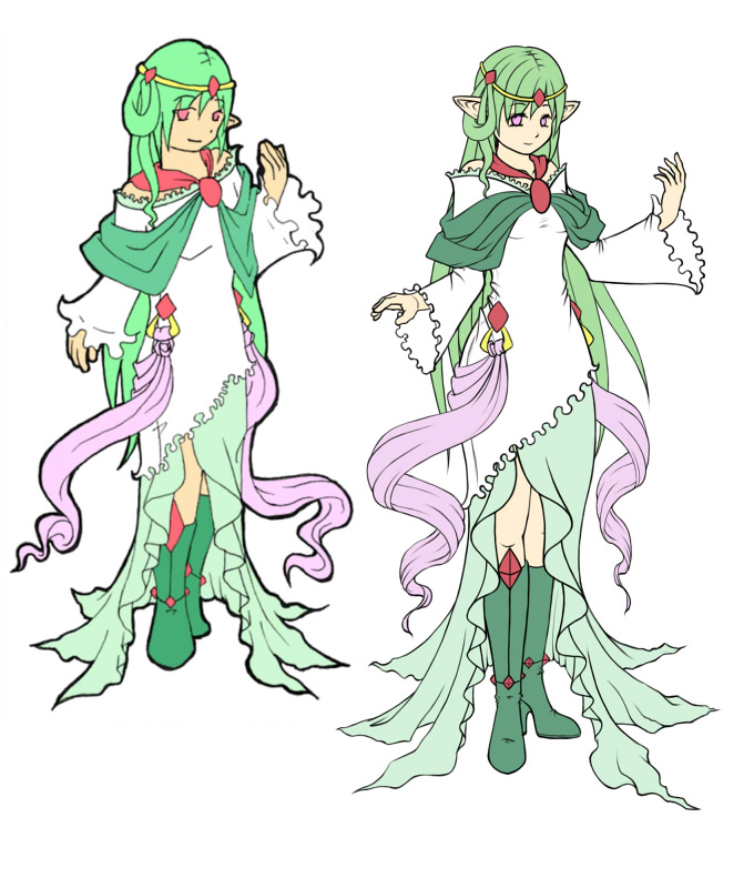 頭身が若干上がってるのと、配色がやや彩度控えめな感じになりました。