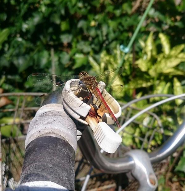 ふと顔を上げた時に母の自転車にトンボが止まっていたのを見つけたので、