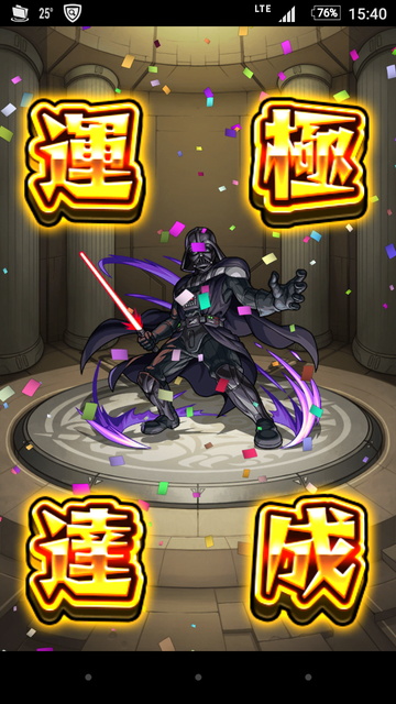 モンストのスターウォーズコラボでちまちまやっていたダースベイダーの運極が完成しました!