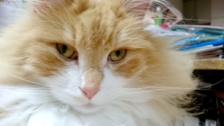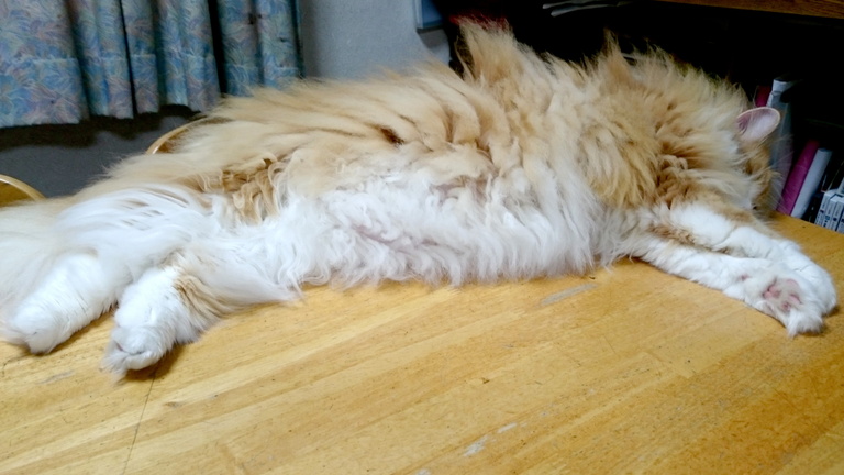 お昼食べようとしたらテーブルの端の方で待ち構えていた猫。