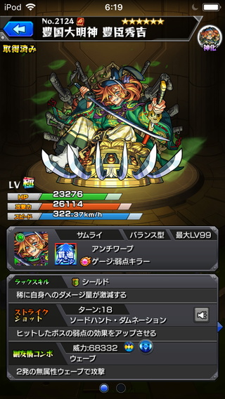 豊臣秀吉の神化の方が来ました。進化も持ってるのでセットでそろってしまった…!