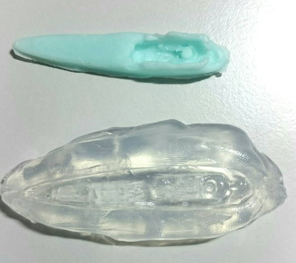 前回型取りした樹脂粘土の方は、薄いところがちぎれてしまってうまくいかなかったです。