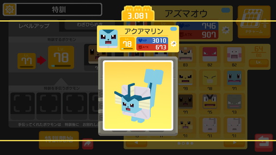 そういえば、ポケクエでイーブイの進化形を図鑑登録するついでに育ててみようと思い、
