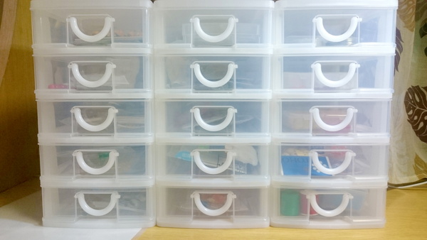 できるだけ種類ごとになるように分けて、引き出しケースにしまっていきました。