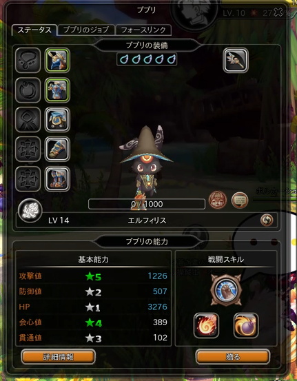自分が戦士なので、ブブリは魔法系にしておきました。