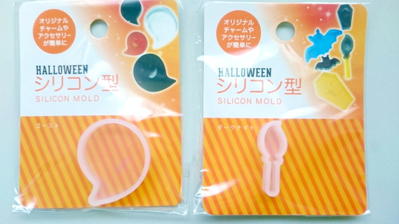 ハロウィンのお化けとホウキ?のモールドと、菱形の台座です。