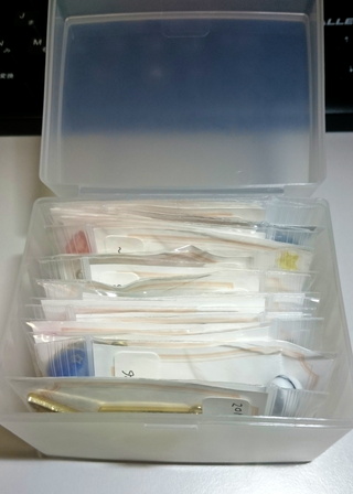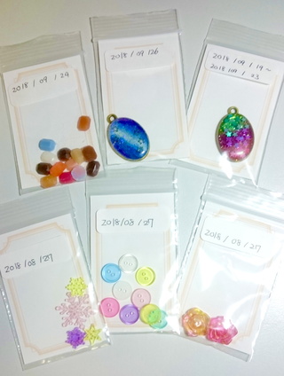 今まで作ったレジン作品を袋に入れてケースに並べるように入れて保存しているのですが、