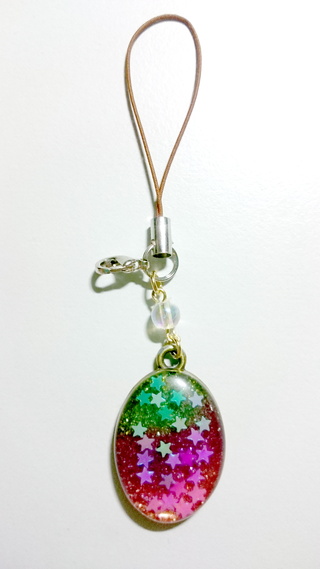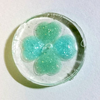 緑のレジンにシルバーとゴールドのラメを入れてクローバーにしました。