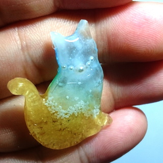 レジンで猫のモールドを使って海をイメージした物を作ってみていました。