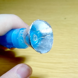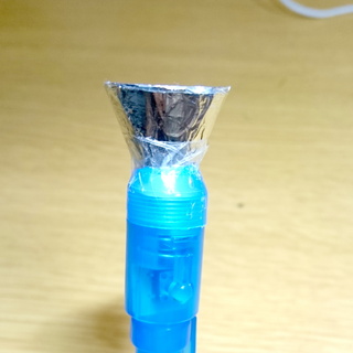 クリアファイルをコンパスカッターでくり抜き、アルミホイルを貼り付けてセロテープで止めました。