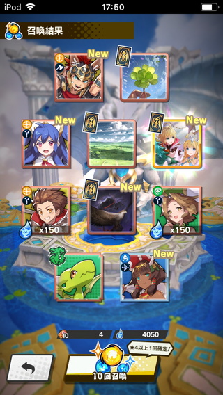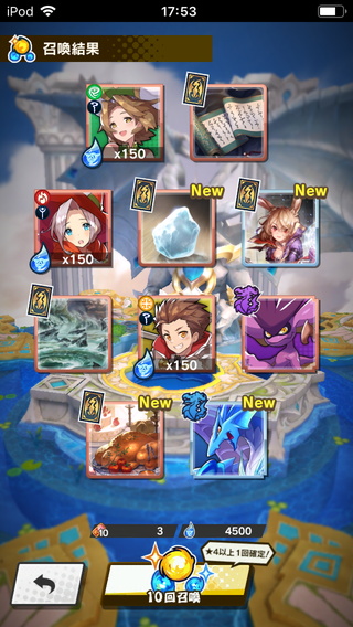 流石に全部画像を載せると大変なので、10連の結果とレア度の高いものだけ載せておきます。