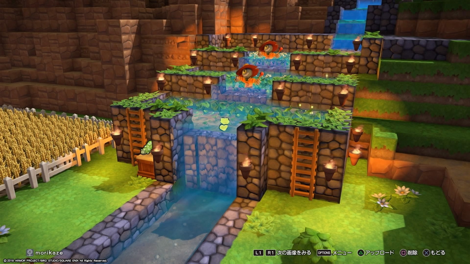 水を引く川を作り、一段ずつ段にして、水が滝みたいに流れるようにして、石垣で囲って、
