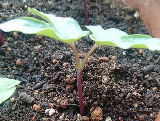 アサガオの方は、早いうちに芽を出した双葉のいくつかから、本葉の兆候が見えるようになってきました。