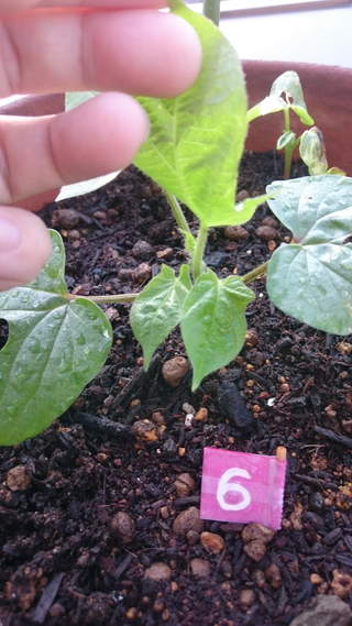 6番が早くも3枚目と4枚目の本葉を開き始めています。