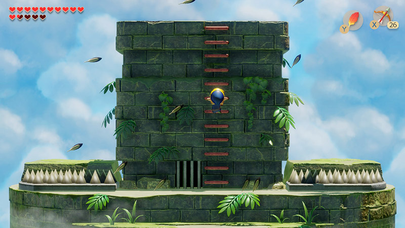 弓と剣を駆使して何とか倒しました。塔から落ちたら体力リセットは今回も適用されてるんだろうか。