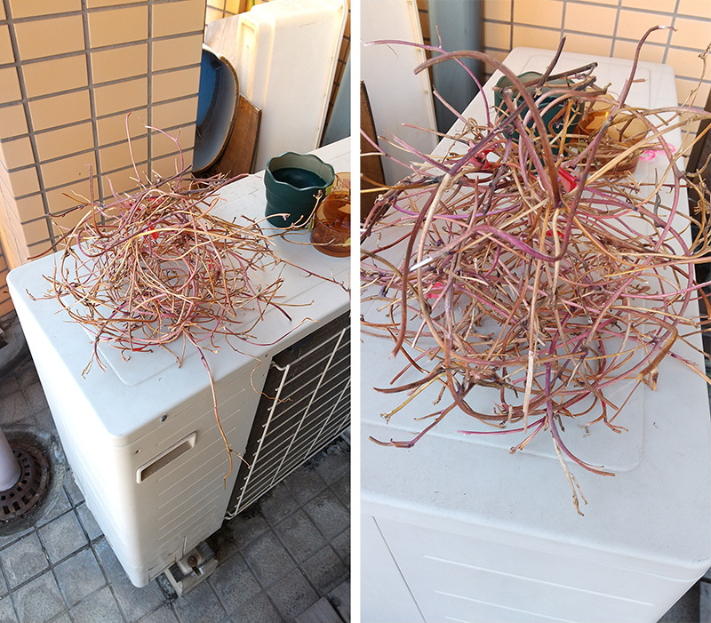カサカサのパリパリに乾燥していたので、手で折れて思ったよりも取るのは楽でした。