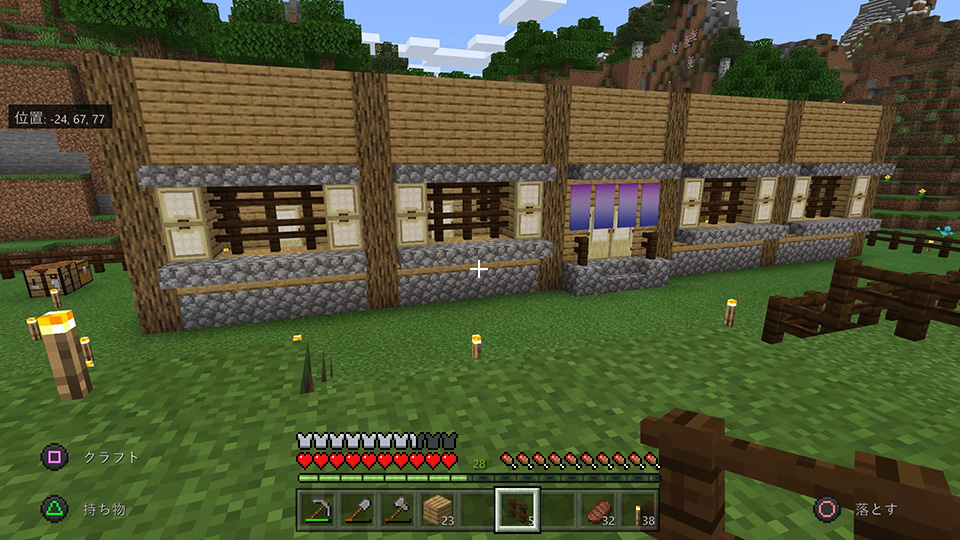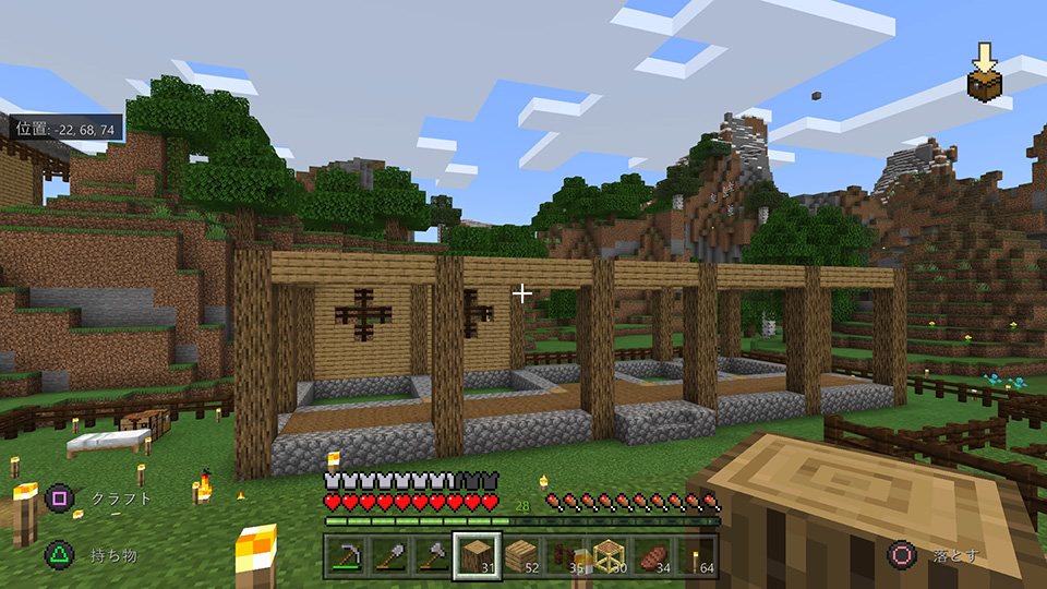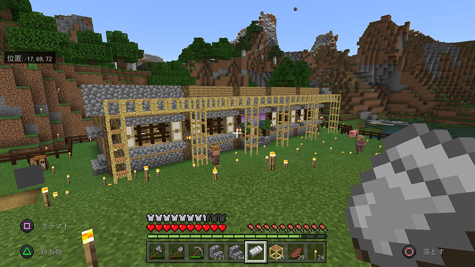 ちょっと高い位置なので足場ブロックを使ってみたのですが、一気に建設現場感が出ました。