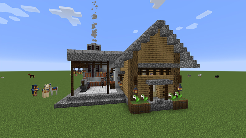 こっちは以前つくった鍛冶屋と矢師の家。