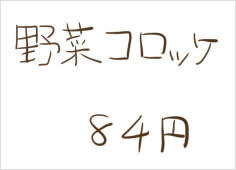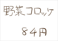 値段を忘れないようにレジ横に「野菜コロッケ 84円」と