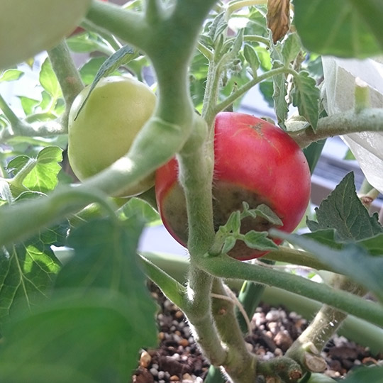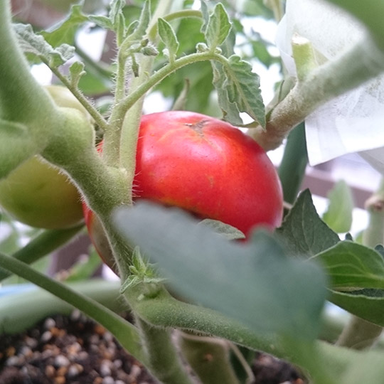 この写真を撮ったあと、トマトの様子を見てふと目線を移したら、