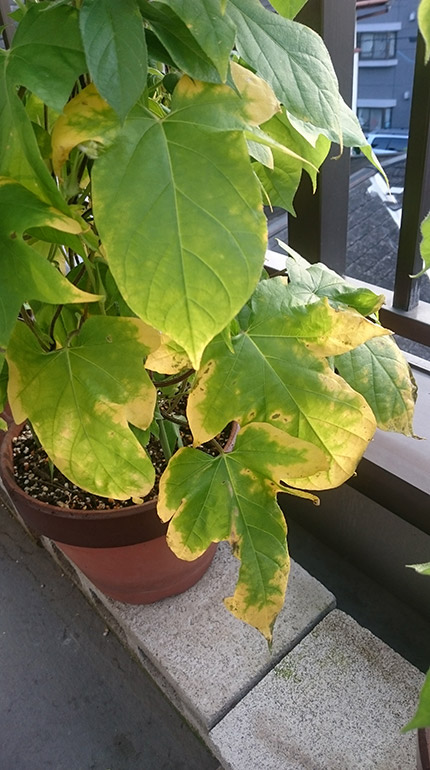 葉っぱがだいぶ黄色くなってきて色も薄いので、おそらく弱り気味だろうと思って、
