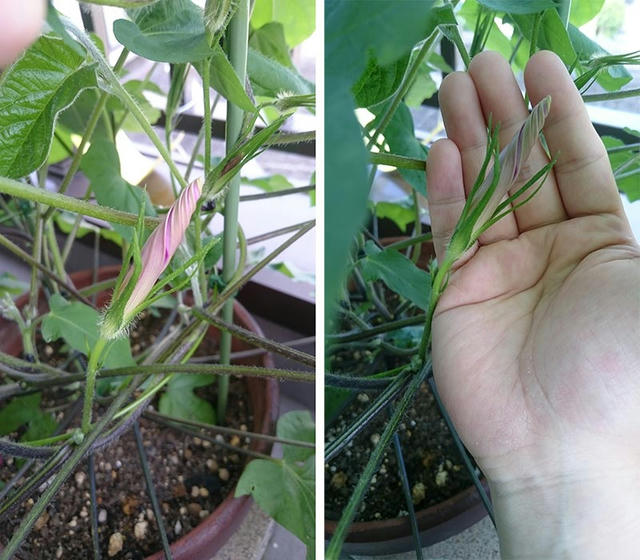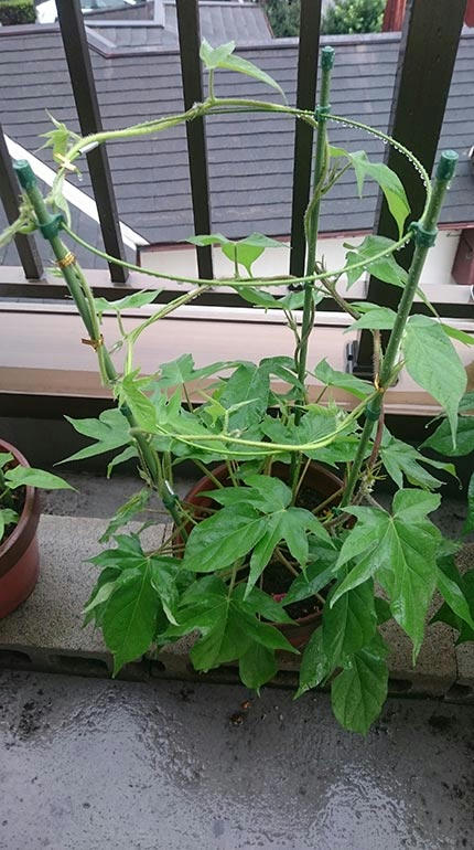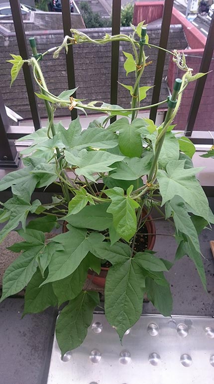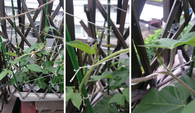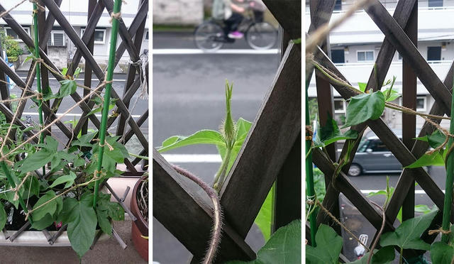 蔓もホームセンターで見たアサガオより太くて丈夫でちょっと硬めなので、