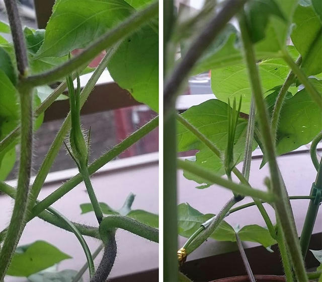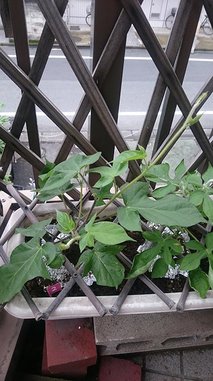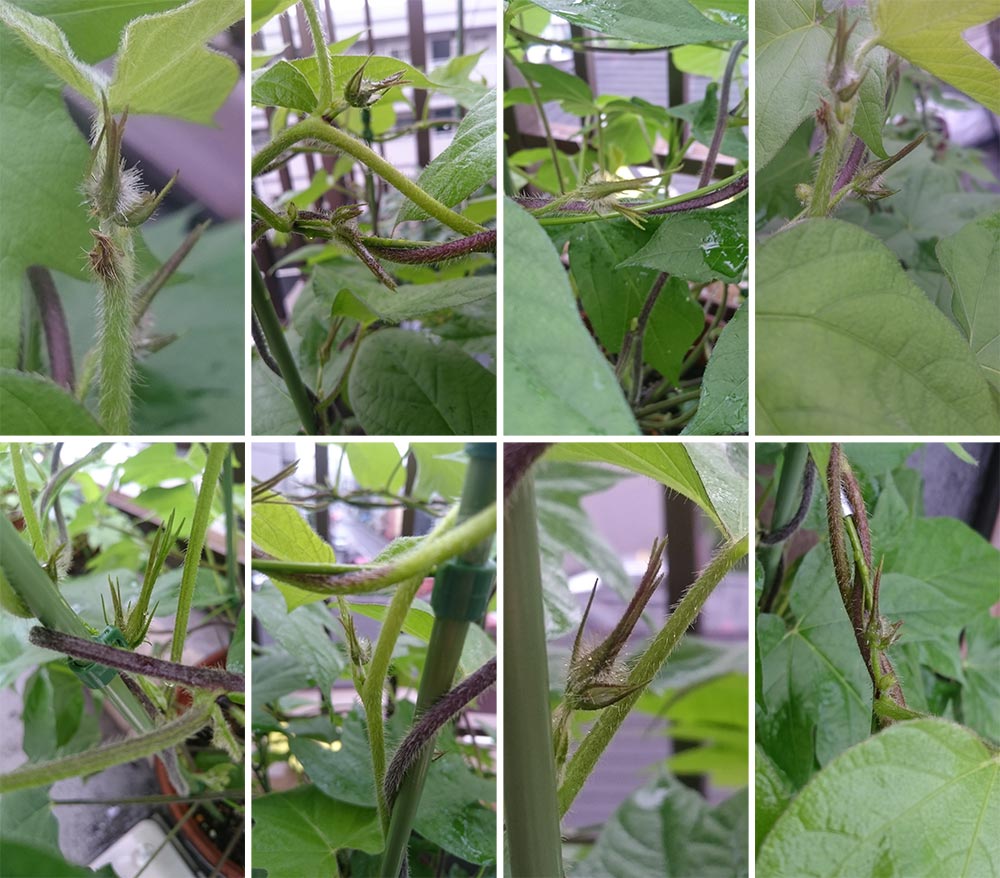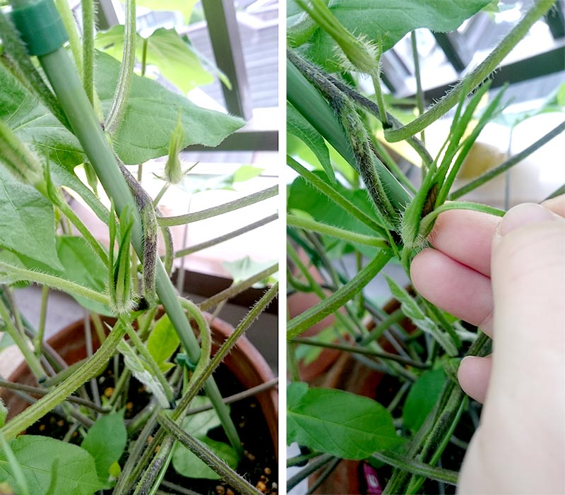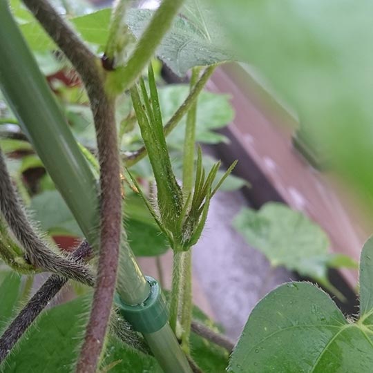 まだ蔓もそこまで伸びておらず、他と比べればずいぶん小さいですが、もう花芽が付き始めています。