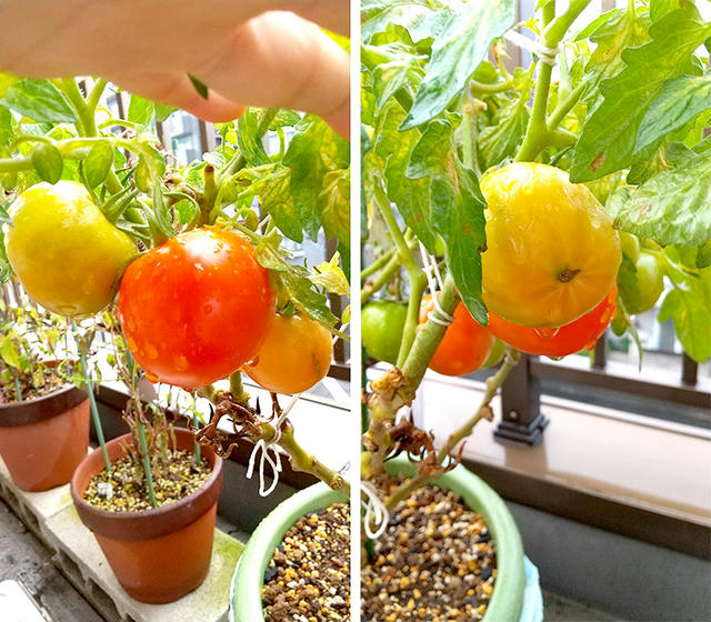 そうそう、この間収獲したトマトの実を、お昼ご飯のおかずとして料理して食べました。