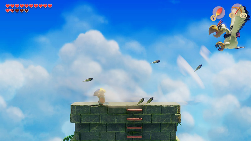 弓と剣を駆使して何とか倒しました。塔から落ちたら体力リセットは今回も適用されてるんだろうか。