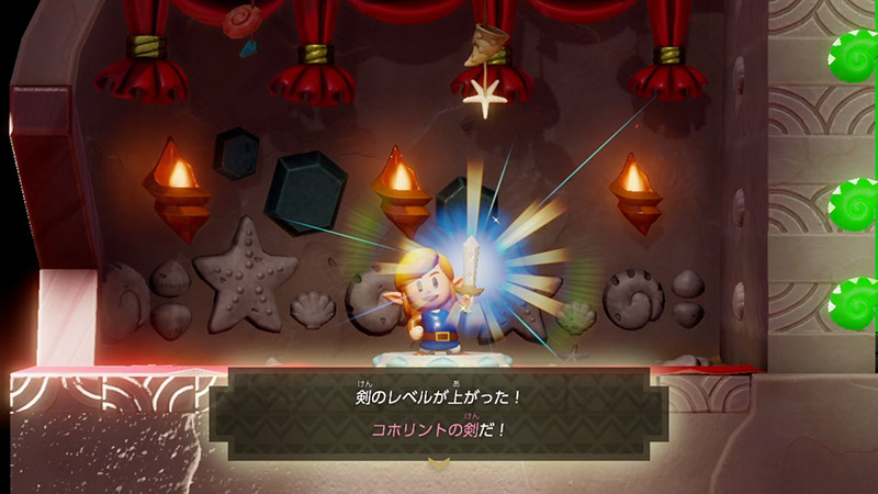 ゲージをみる限り、剣のレベルアップには貝殻40個でいいみたいですね。