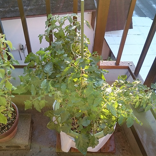 明日は雨風ひどくなるという話なので、アサガオやトマトが少し心配です。